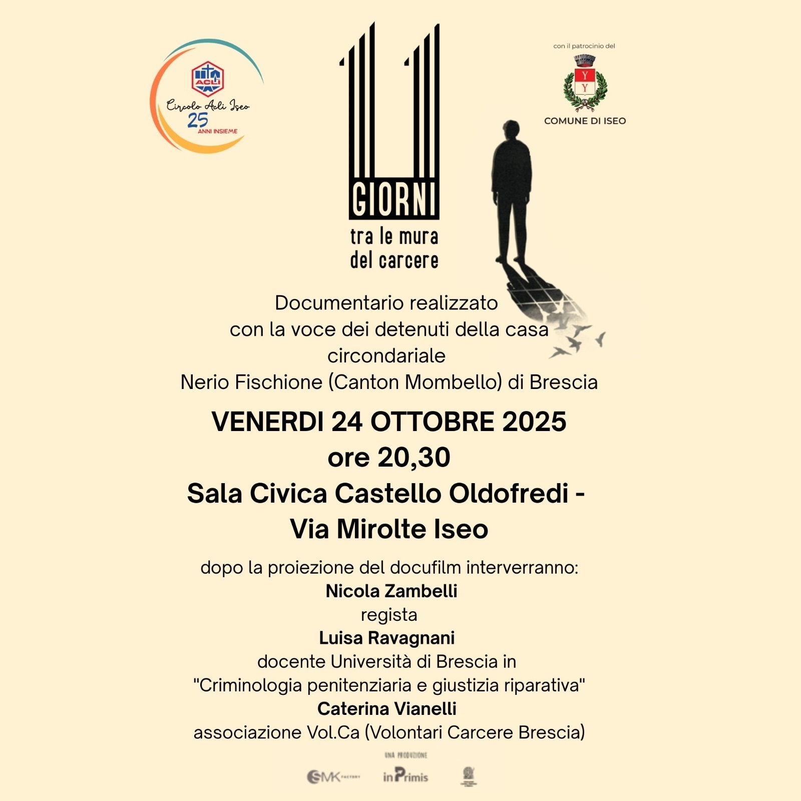 docufilm intenso e toccante, realizzato con la voce dei detenuti della Casa Circondariale Nerio Fischione (Canton Mombello) di Brescia. Un’occasione per riflettere insieme su libertà, dignità e giustizia riparativa.