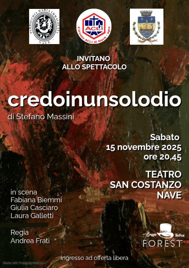 Circolo Acli di Nave Aps, insieme alla Parrocchia Maria Immacolata e al Comune di Nave, invita allo spettacolo