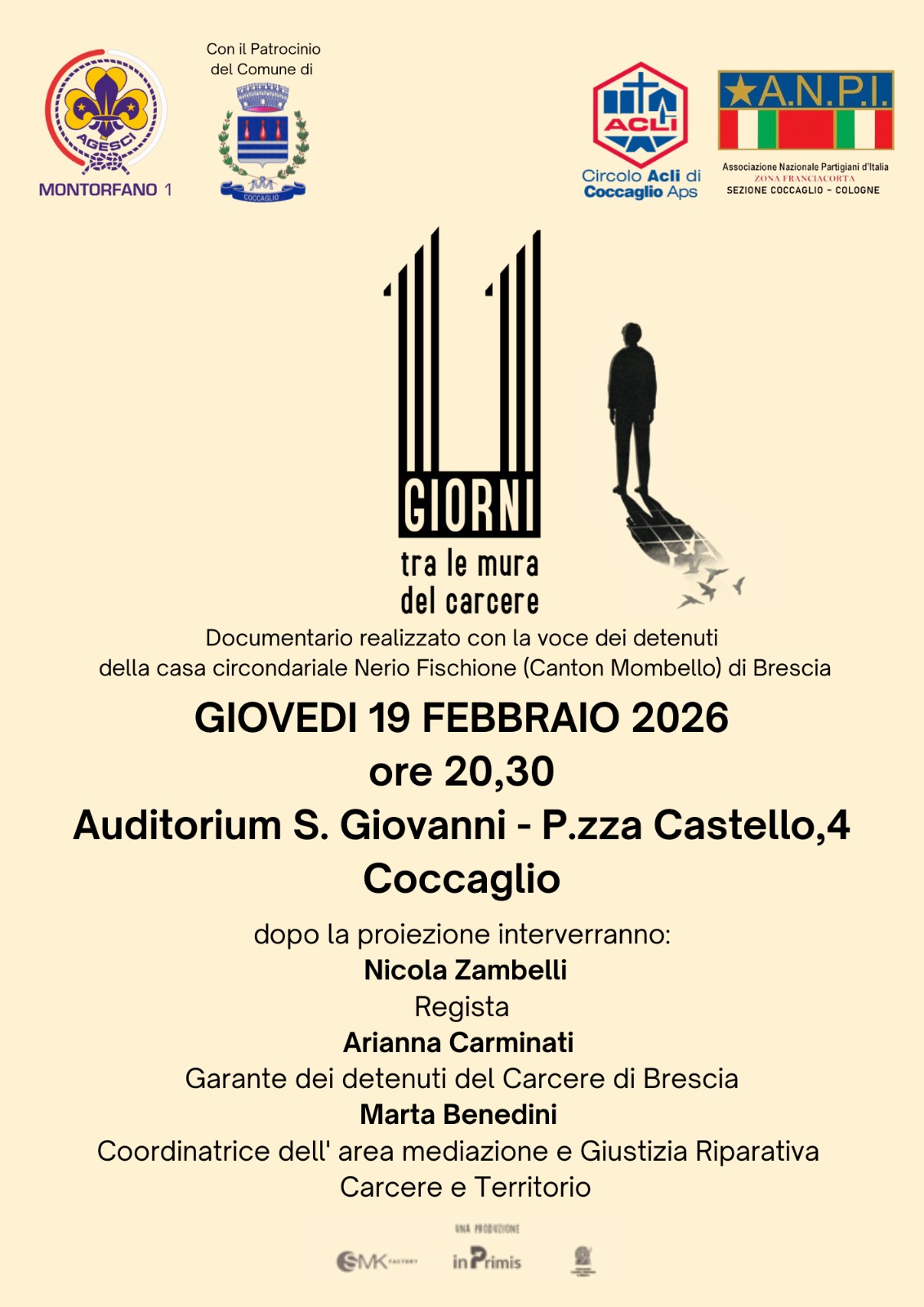 L'iniziativa è organizzata dal Gruppo Agesci Montorfano 1 insieme al Circolo Acli di Coccaglio e all'ANPI, con il patrocinio del Comune di Coccaglio