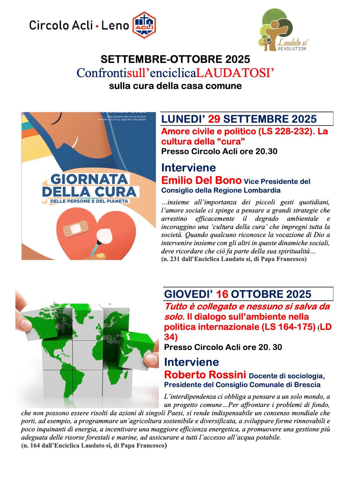 Lunedì 29 settembre 2025 - ore 20.30 (Circolo Acli di Leno, via Collegio)
